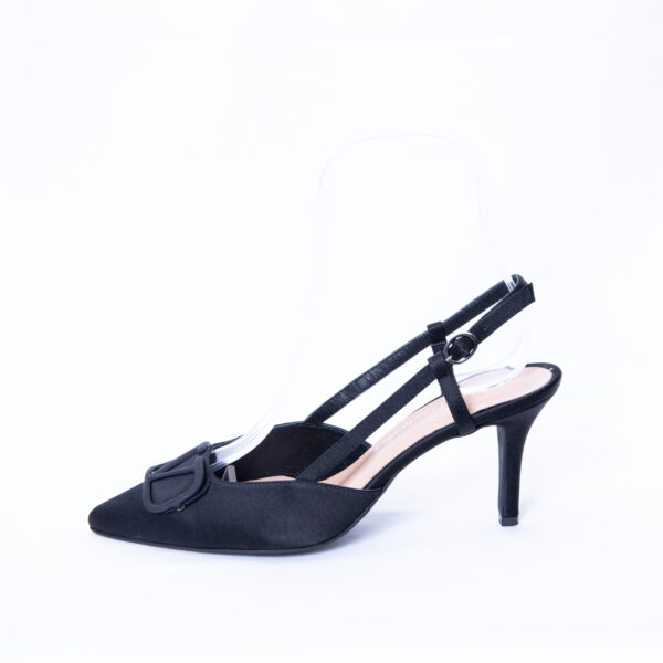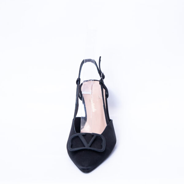 Γόβα slingback σε μαύρη απόχρωση, δερμάτινη εσωτερική επένδυση, μαύρο διακοσμητικό και τακούνι 6,5cm